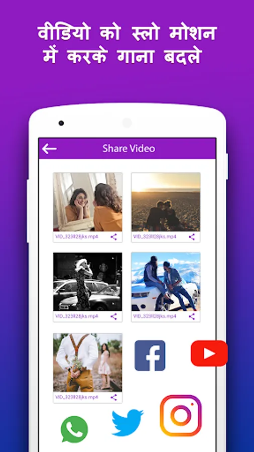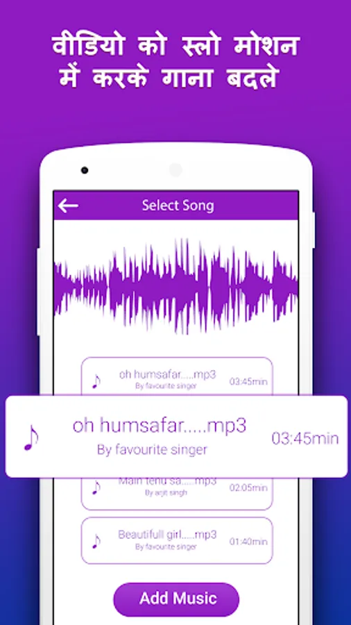 This Slow motion karke Video me song badale application change song of any video and slow down speed. In this application you can select your video and then you can spped down it's speed as per your choice and you can change song of it. Slow motion banake Video me gana badale helps you to make your slow motion video with your favourite song.video ko slow karke usme gana badal ne ki app.