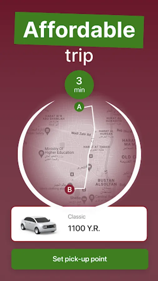 Smart Rahal taxi in Sana’a, Yemen - the lowest price for cab rides. Sana cab - easy, safe and comfortable travel. Arriving Sana Cab in 10 minutes after request. Door to door Sana cab passenger service.