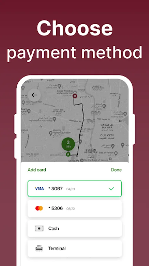 Smart Rahal in Sana’a cares about the passenger's safety. The drivers are selected and trained thoroughly. With the help of a rating system, this helps us ensure to provide the best possible taxi ride service in Yemen.