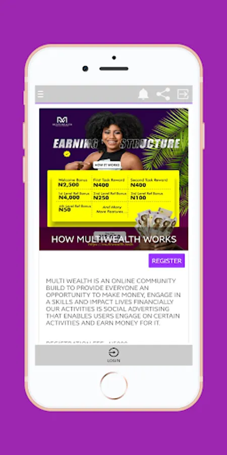 MULTI WEALTH IS AN ONLINE COMMUNITY BUILD TO PROVIDE EVERYONE AN OPPORTUNITY TO MAKE MONEY, ENGAGE IN A SKILLS AND IMPACT LIVES FINANCIALLY OUR ACTIVITIES IS SOCIAL ADVERTISING THAT ENABLES USERS ENGAGE ON CERTAIN ACTIVITIES AND EARN MONEY FOR IT.