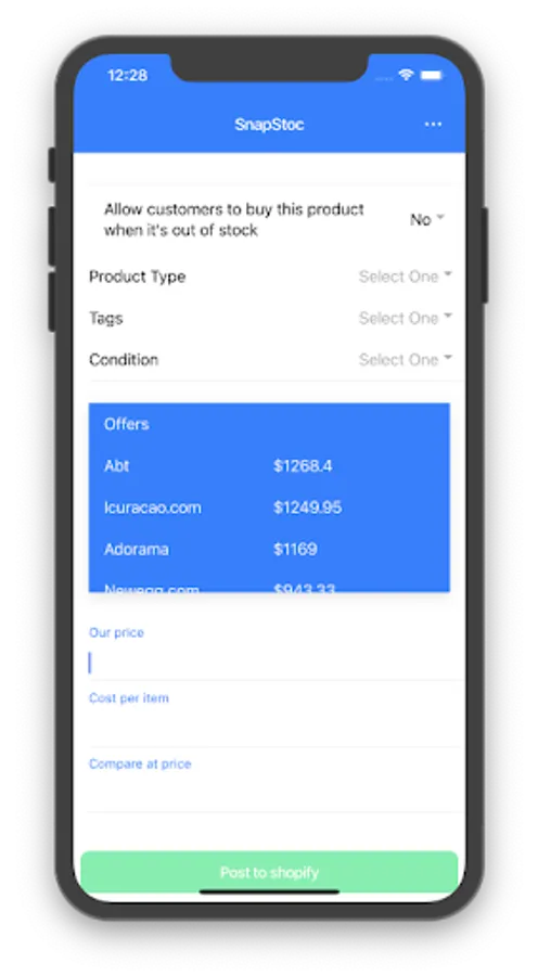 Through a series of integrations, well thought out workflows, and actionable insights, the SnapStoc app allows you to Increase Efficiency- with our scan to integrated form technology. The app also improves accuracy- by reducing typos and errors. Lastly, the app increases sales and profit- because getting your inventory on your website quickly and priced right speeds up your sales cycle. Moreover, the freed up time created by SnapStoc means you can do more marketing, selling, and operational improvements.