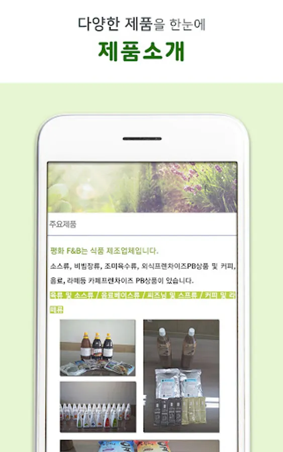 Pyeonghwa F&B is a company specializing in cold noodle soup, fruit juices, liquid products, and other processed foods.
