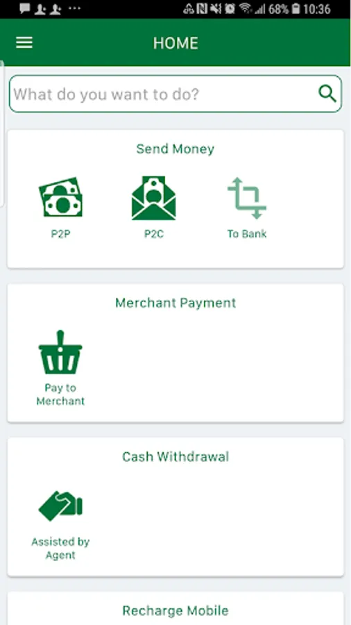 - Airtime top-up/recharge