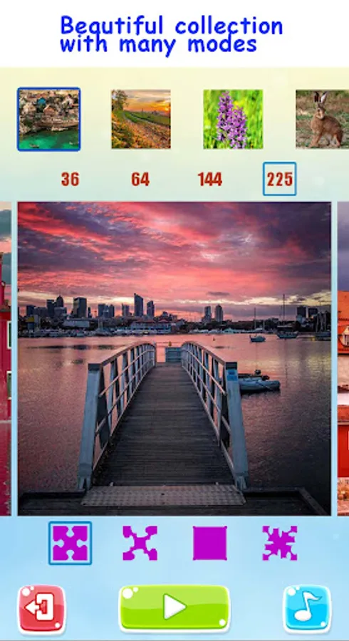 Drag the pieces to the correct spot to complete the picture of HD jigsaw puzzle. Its difficulty is based on the number of puzzle pieces, which should be put together. You can freely choose from 4 difficulty levels and play with up to hundreds of pieces, which is as challenging as real jigsaw puzzles for adults. Whatever your level of playing best HD jigsaw puzzle games, you will surely enjoy it.