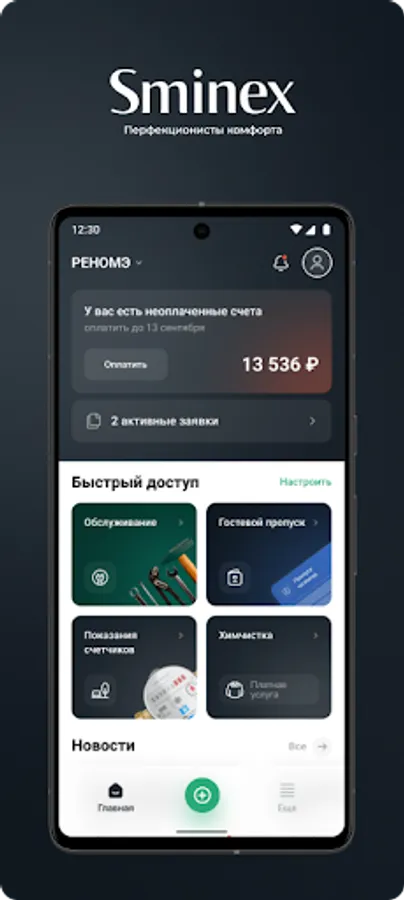 Using the Sminex Comfort mobile application, you can order Comfort Services, manage your accounts and keep abreast of all important events.