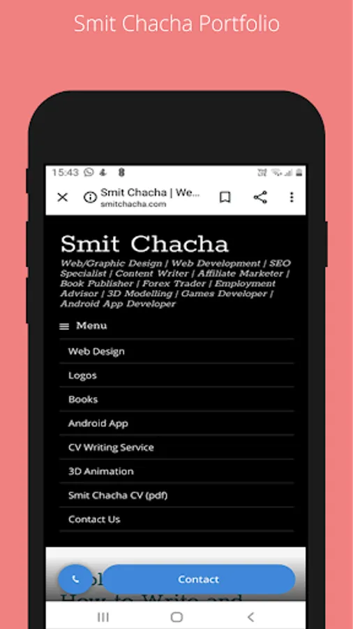 Smit Chacha is Web/Graphic Design | Web Development | SEO Specialist | Content Writer | Affiliate Marketer | Book Publisher | Forex Trader | Employment Advisor | 3D Modelling | Games Developer | Android App Developer.