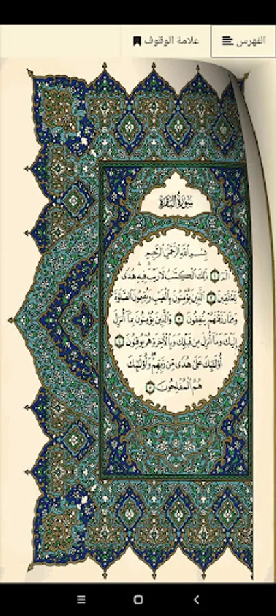 The application displays the Holy Quran on the old version of the King Fahd Complex