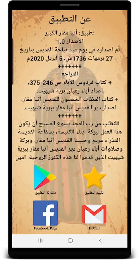 This app is dedicated to Saint Anba Makar the Great, father of the monks in the wilderness of Shehit, and dedication to all his loving sons and daughters