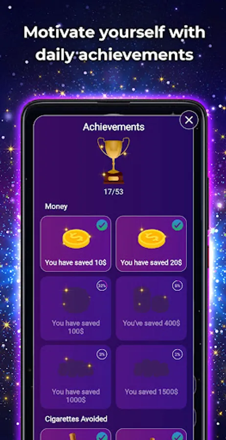 Get different rewards as the days go by. Each time you achieve an accomplishment, you will be notified so you can celebrate it and stay motivated every day.