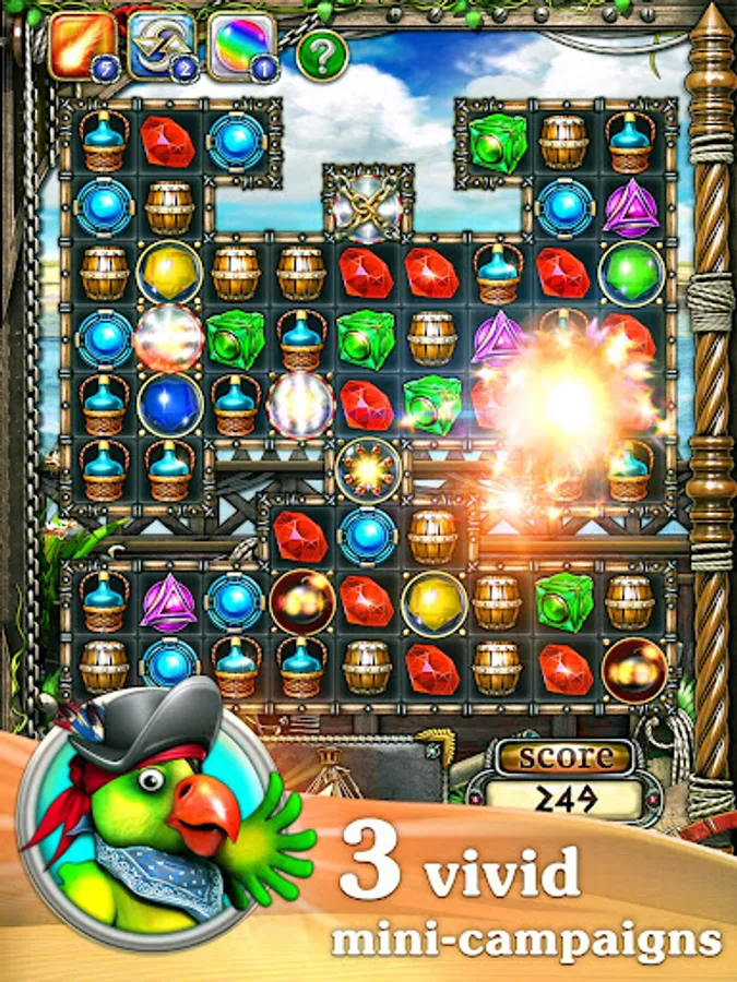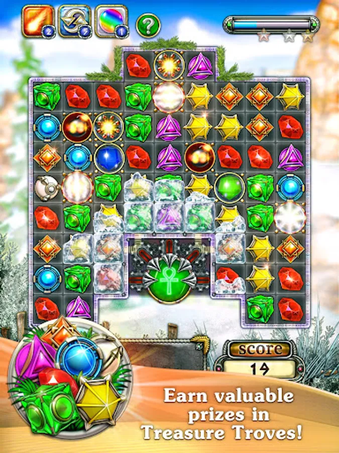 - match 3 jewels in a row or create powerful Bonuses with 4 or 5 gems to crush gems on the field