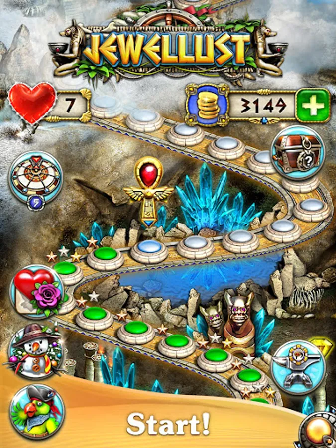 Jewellust Platinum is a premium edition of our game Jewellust Endless. Tired of waiting and want to play more? Install Jewellust Platinum: unlimited lives, no annoying ads, 150 coins for free!