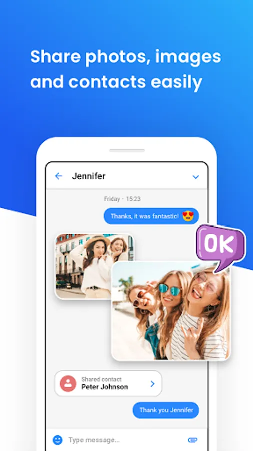 SMS Messenger for Texts & Chat is your new free favorite SMS messenger and texting app to exchange texts, messages, photos, contacts, stickers and many more! Next to your social media apps, SMS Messenger for Texts & Chat is a perfect addition to your chat and texting apps as it works without an internet connection! Talking, texting, chatting, messaging (you name it) offline has never been easier! Most importantly, SMS Messenger for Texts & Chat is based on letting you send messages in a safe and private manner as your privacy is our top priority.β€οΈ Next to privacy, the messenger app equally lets you enjoy sending texts fast and instantly. So don't wait, go chat now, have a good vibe or mood and enjoy having with your friends and family. Note that we just added different modes for you to have fun even more. It is your choice to go with either light or dark mode.π€ͺ