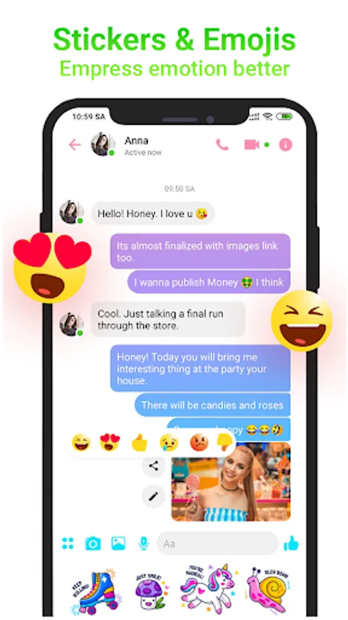 - Text has never been better, with countless emoji, GIF, and stickers.