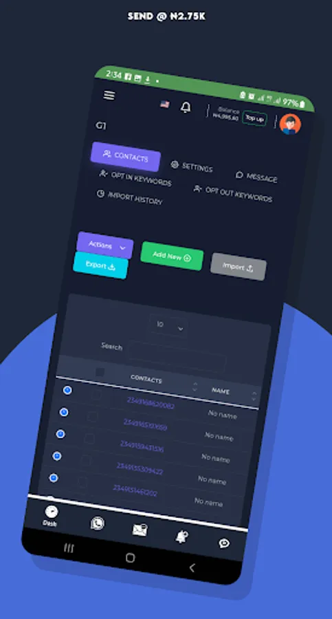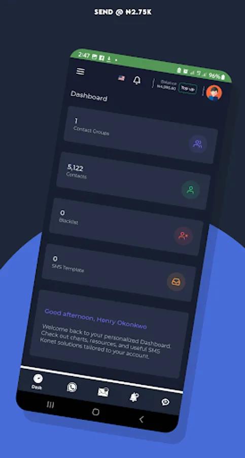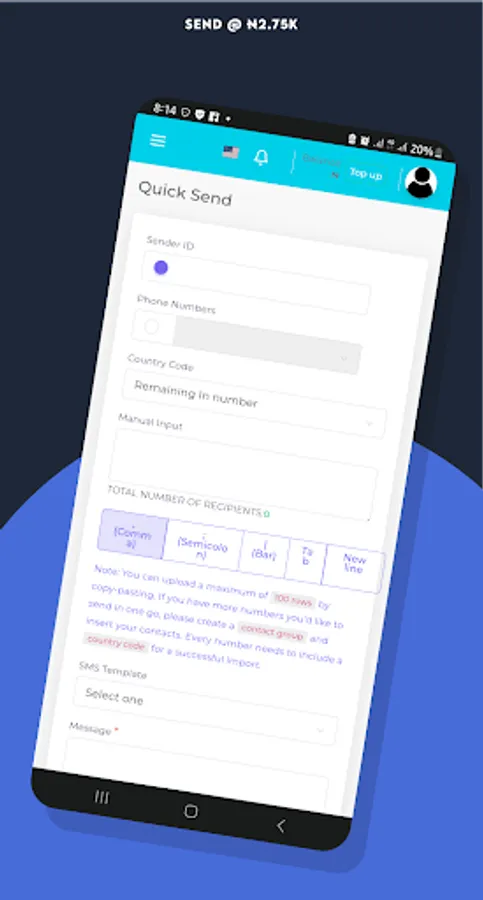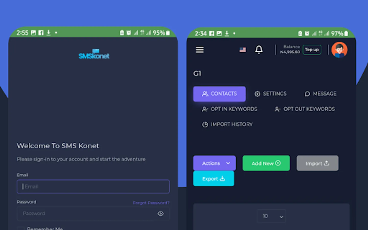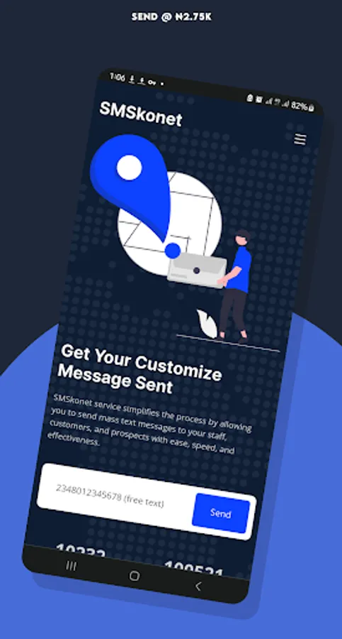 SMSkonet allows you to easily send free and premium bulk SMS in Nigeria and Africa to numbers on your phone. SMSkonet provides Bulk SMS services to Individuals, Corporate Organizations, Churches, NGOs for events purposes. Send Bulk SMS or Text Messages to Nigerian and African Numbers. Especially to MTN, Glo, Airtel, Etisalat, Visafone Networks, etc for ridiculously low prices.