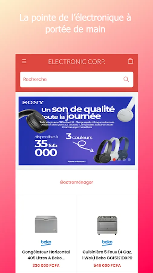 Electronic corp is the leader in the field of the sale of electronic products and household appliances. It is a Senegalese firm in partnership with the biggest brands in the world including Sony, Beko, Canon, Yamaha, Enduro, Panasonic,
