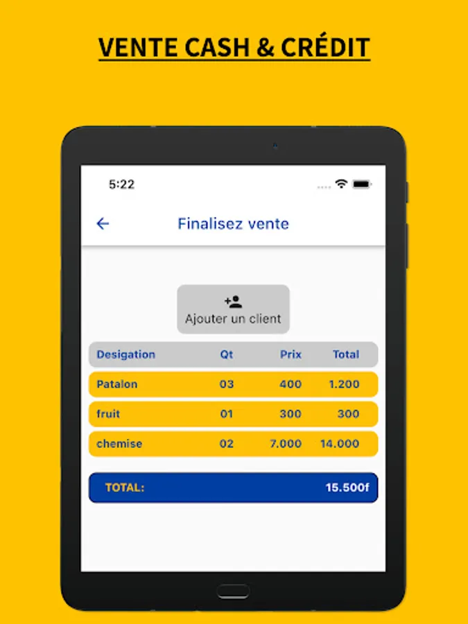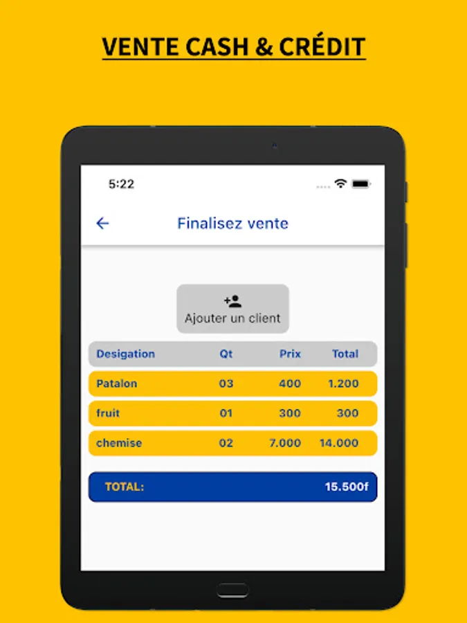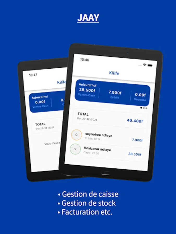 Whether you run a large formal boutique or a few roadside stalls. jaay is designed to help you manage your store. It is a complete cash register, inventory management and customer management application. It also allows, among other things, the creation of invoices With a simple and easy to learn interface, and powerful features under the hood that make the management of your business easier and more efficient.
