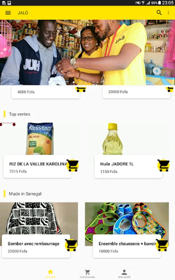 JALO allows stores offering products and services to maintain their activity and maintain relationships with their customers; via a web and mobile platform integrating instant payment and logistics monitoring services. Targeted stores can publish their products there, track their sales; and interact with their customers. Customers can pay via mobile money, receive notifications (sms, mobiles and emails); and have it delivered within 48 hours.