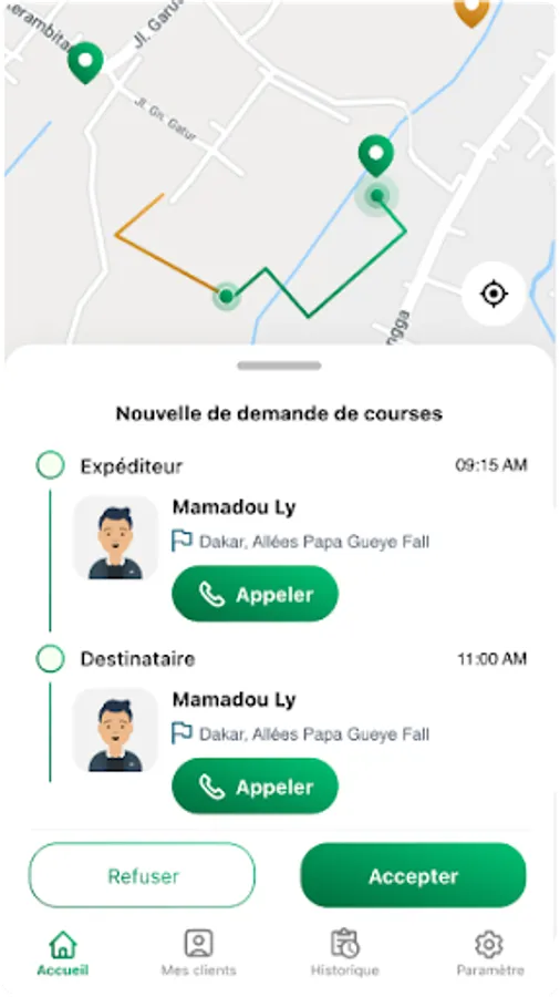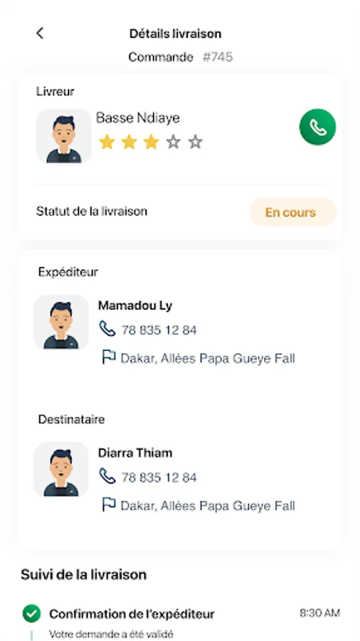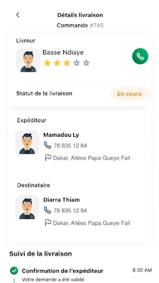 Kerby connects deliverers and customers through the simple registration of the telephone number, allowing to circumvent the problem linked to the Senegalese address system, with the possibility of adding one or more stops between the sender and the recipient. . The customer also has the option of adding their favorite deliverers to a list and these have optimized deliveries because they are only offered trips close to their position.