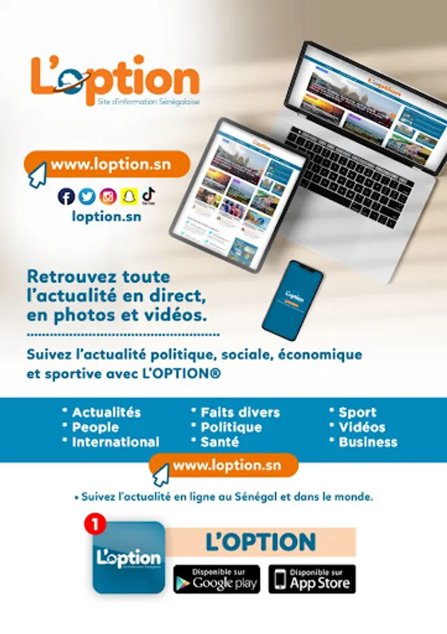 Téléchargez gratuitement l’application L’OPTION pour suivre l’actualité en ligne au Sénégal et dans le monde.