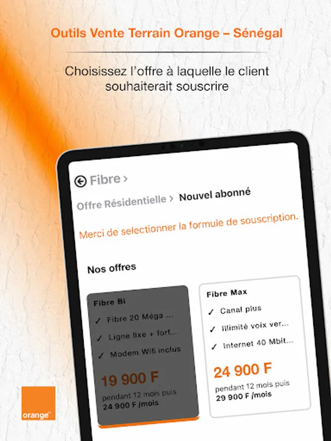 The Orange field sales tool (OVTO) was designed to facilitate the sale of fixed Broadband products throughout Senegal.