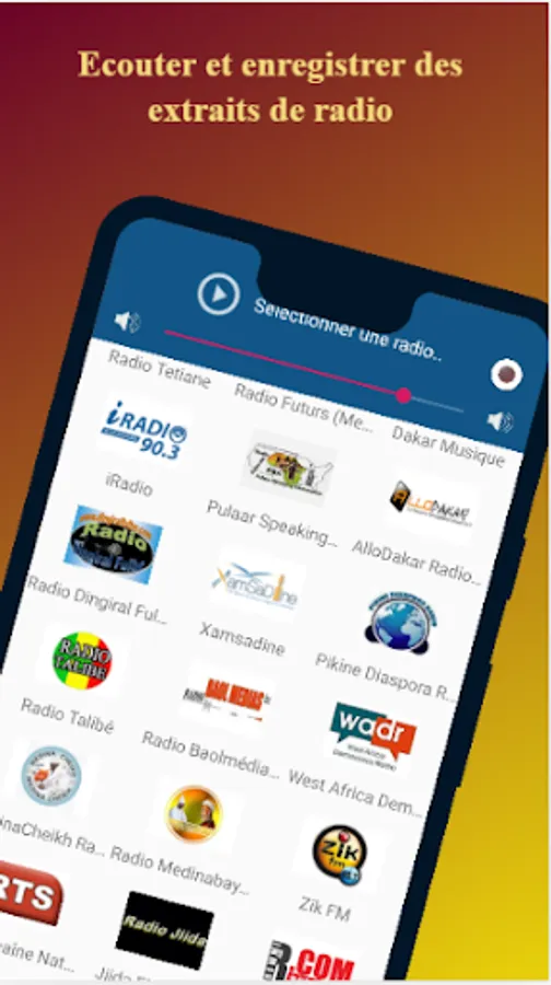 With Radio Senegal, you can listen to the best live radio stations and follow your favorite shows for free. You can record the broadcast radios and re-listen to the recordings without having an internet connection.