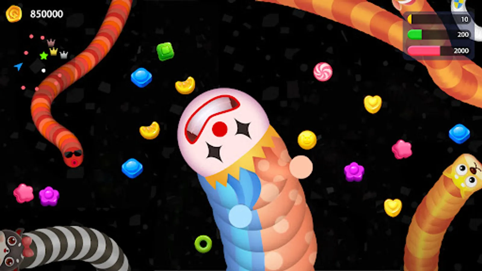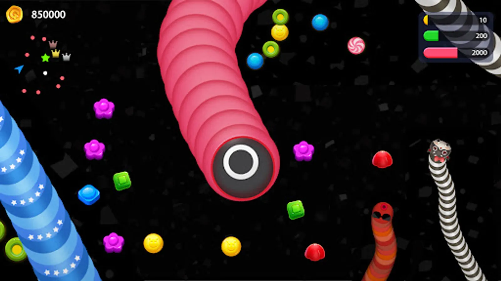💡 Watch out for other players and try not run into them, otherwise you’ll have to start from scratch. Cut off other players by letting them crash heads into your worm's body.