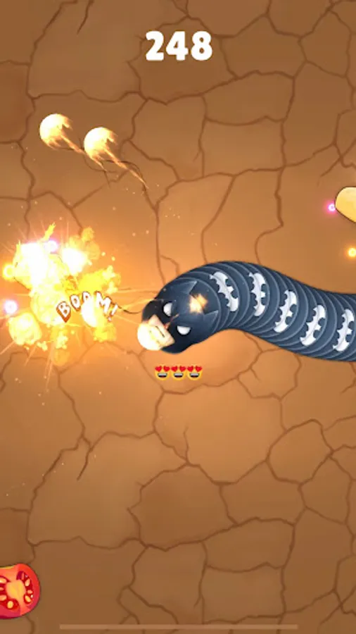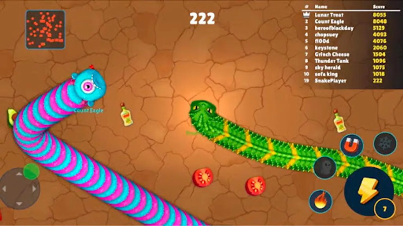 Descend into the mysterious depths and unveil the secrets of the reptilian underground cities. Eating food to grow longer. Discover power-ups to enhance your abilities and overcome your foes.