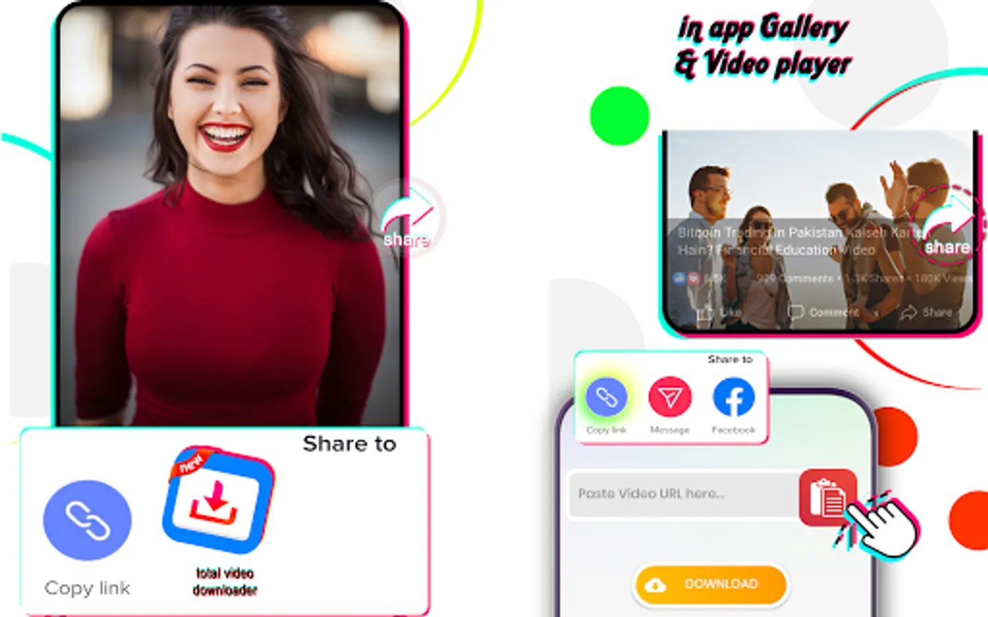 1. What you have to do is, an open supported app on your phone, Copy URL of like video you want to and all video downloader will automatically download that funny video without watermark. All Video downloader having auto copy & paste video link. All Video dowloader is stores all video in local android device only.