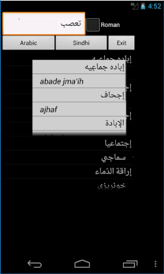 Sindhi Arabic Dictionary - travel dictionary to translate Sindhi to Arabic.Copying a word from the translated list for a reverse translation can be used to find synonyms and to understand the broader use of the word. Although the dictionary does not provide definitions or examples, the use of the translation software in this way provides you with a mechanism to better understand Arabic words in the Sindhi context without the need for definitions.