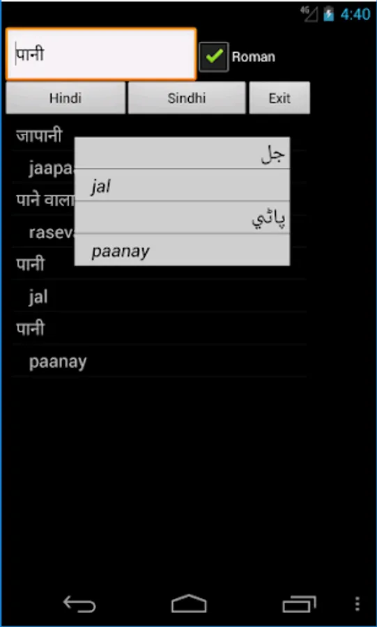 Sindhi Hindi Dictionary - travel dictionary to translate Sindhi to Hindi.Copying a word from the translated list for a reverse translation can be used to find synonyms and to understand the broader use of the word. Although the dictionary does not provide definitions or examples, the use of the translation software in this way provides you with a mechanism to better understand Hindi words in the Sindhi context without the need for definitions.