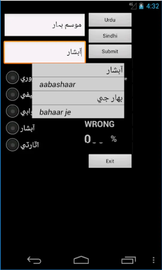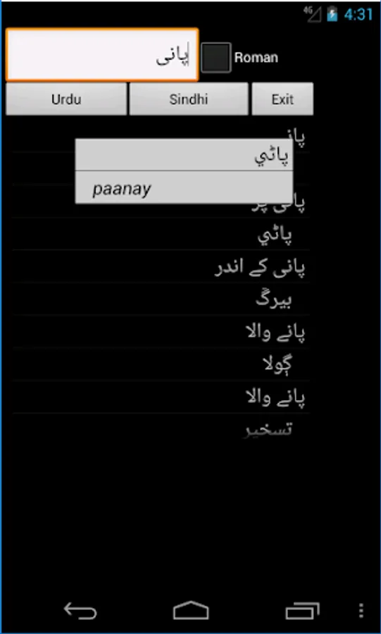 Sindhi Urdu Dictionary - travel dictionary to translate Sindhi to Urdu.Copying a word from the translated list for a reverse translation can be used to find synonyms and to understand the broader use of the word. Although the dictionary does not provide definitions or examples, the use of the translation software in this way provides you with a mechanism to better understand Urdu words in the Sindhi context without the need for definitions.