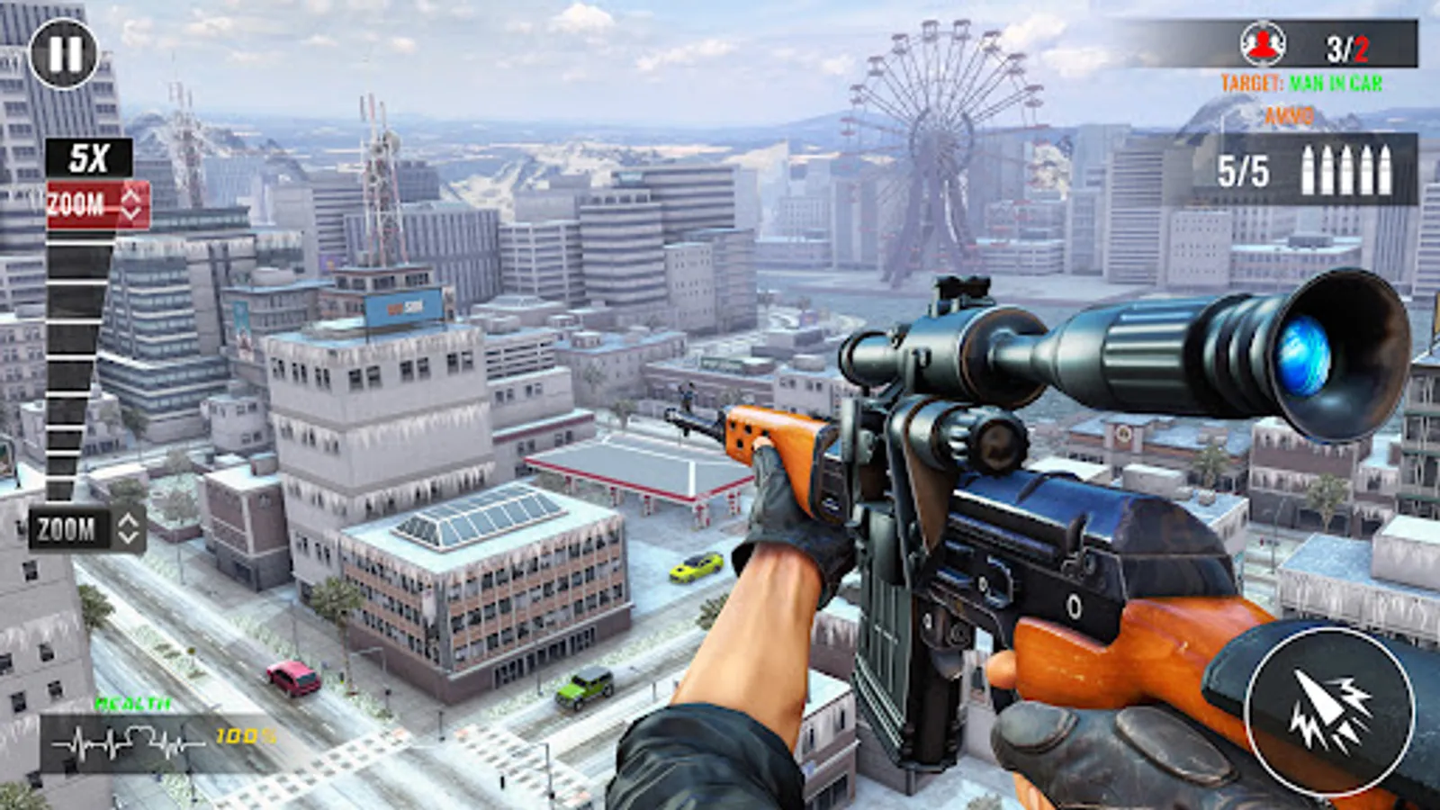 In sniper games, you have to shoot all the criminals around you one by one and don’t let them escape. Take the perfect shot and finish them off in the sniper assassin 3d shooting games. Use your fps shooting games skills to get rid of all the criminals around you in gun shooter games. You might have played many free sniper gun games offline but this new sniper shooting game has a unique gun games 3d adventure. As a shooting games 3d master you need to use your sniper rifle and bullets to take down the enemy in the gun games offline. Try to shoot your target from different ranges to prove your metal in shooting games for free.