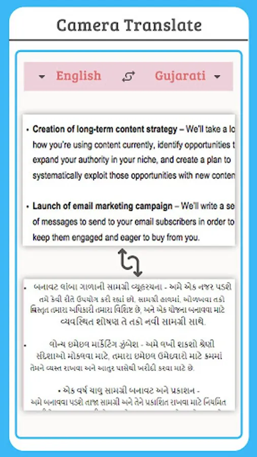Camera Translator - All Languages Photo Translator app has smart OCR feature which enable you to translate any text direct using camera without need of writing it.