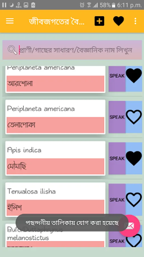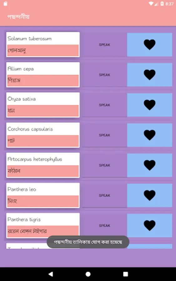৬."Speak" বাটন পুনরায় যোগ করা হয়েছে।ফলে যেকোন জীবের বৈজ্ঞানিক নাম শোনা যাবে।