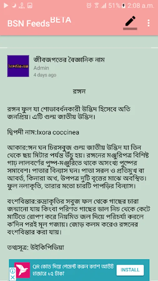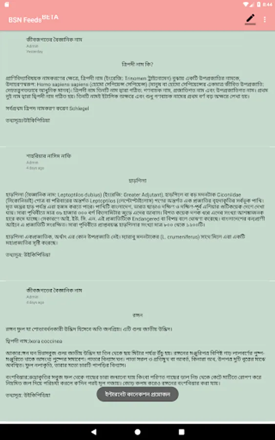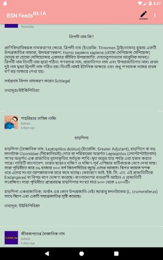 ২."BSN Feeds" নামক নিউজ ফিড যোগ করা হয়েছে।জীববিজ্ঞান সম্বন্ধে নানা আর্টিকেল প্রকাশিত হবে এখানে!!!!