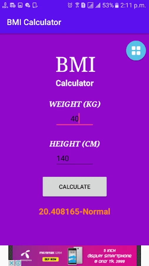 *Calculate you BMI by our awesome calculator.Just palce you weight and height*