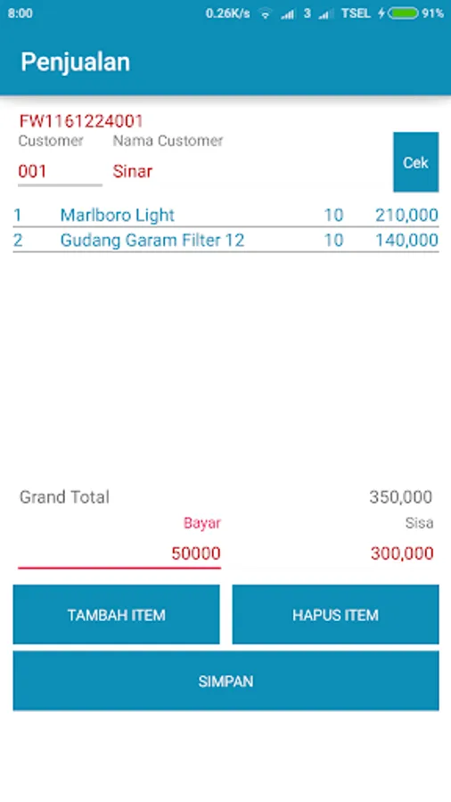 • Support Android (To facilitate sales and or canvas around the circumference to conduct transactions penjuaan and or Sales Order)