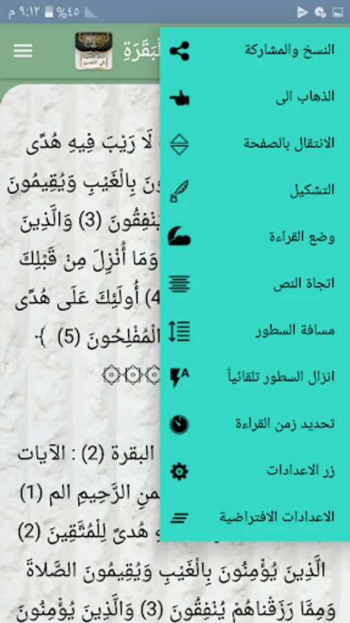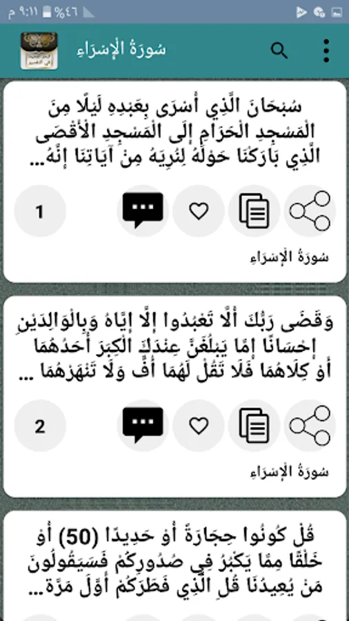 ◉ The possibility of copying and sharing any specific part of the verse and interpretation through prolonged pressure.