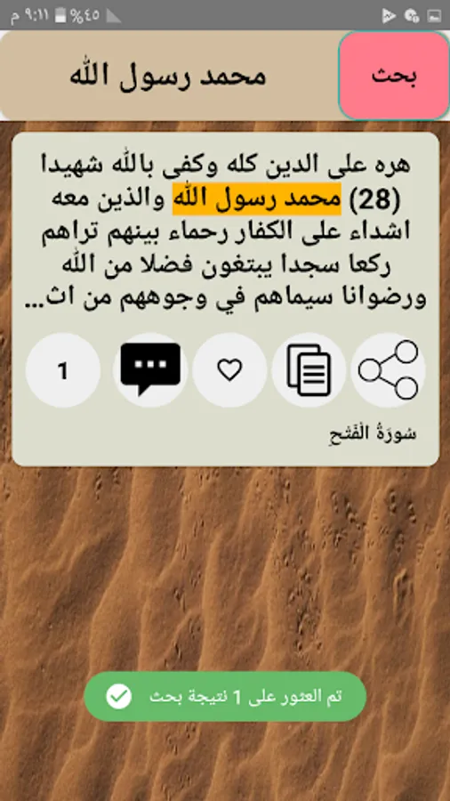 ◉ Complete search in the entire Great Qur’an by any word in verses or interpretation.