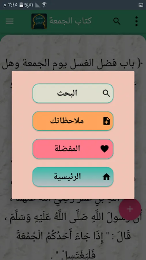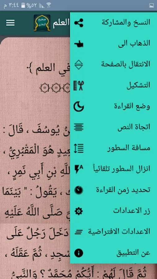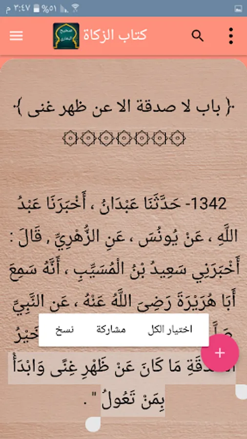 ◉ The possibility of copying any hadith or the whole section in whole or in part.