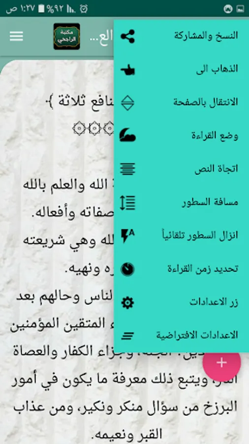 ◉ The possibility of changing the background color of reading the page to hundreds of colors.