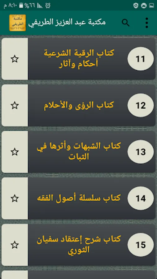 ◉ A list of the chapters of each book separately.