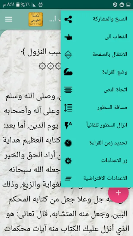 ◉ The possibility of changing the background color of reading the page to hundreds of colors.