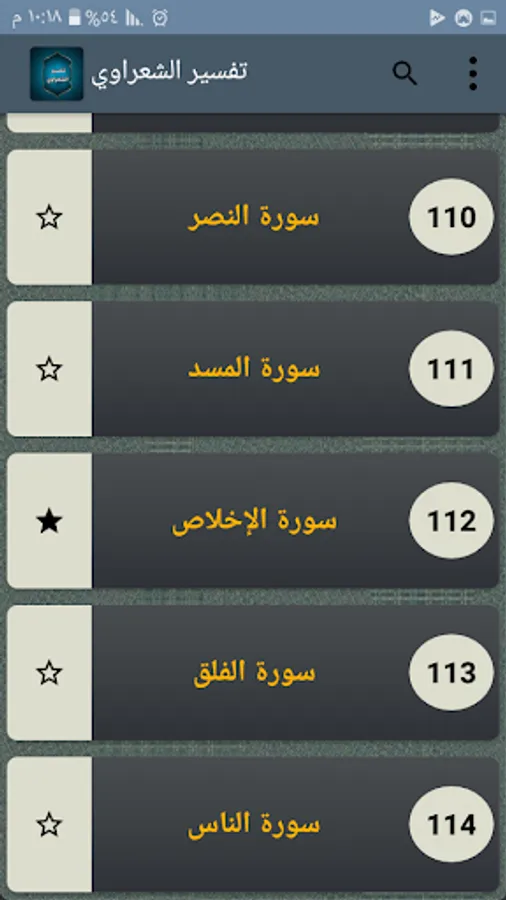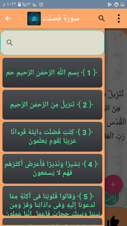 ◉ A side menu containing all the verses of the surah for quick presentation and transition between them.