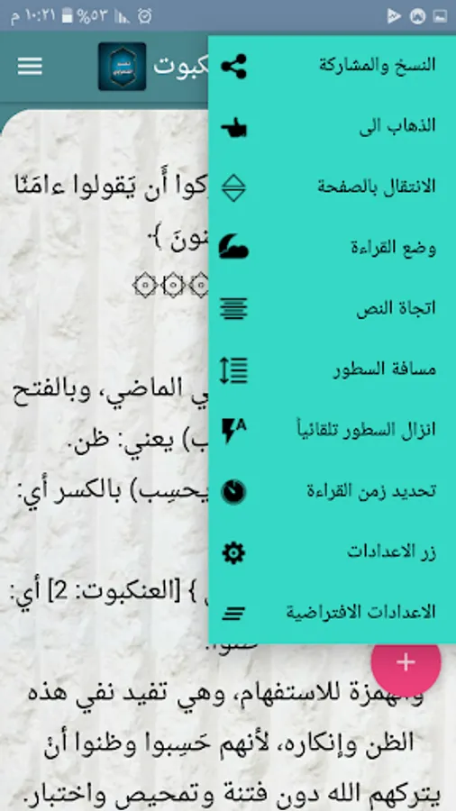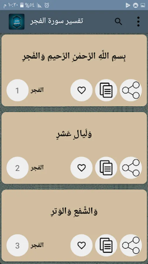 ◉ The possibility of copying and sharing any specific part of the verse and interpretation through prolonged pressure.