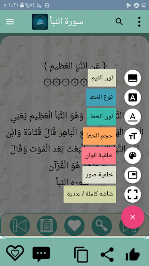 ◉ The possibility of changing the background color of reading the page to hundreds of colors.