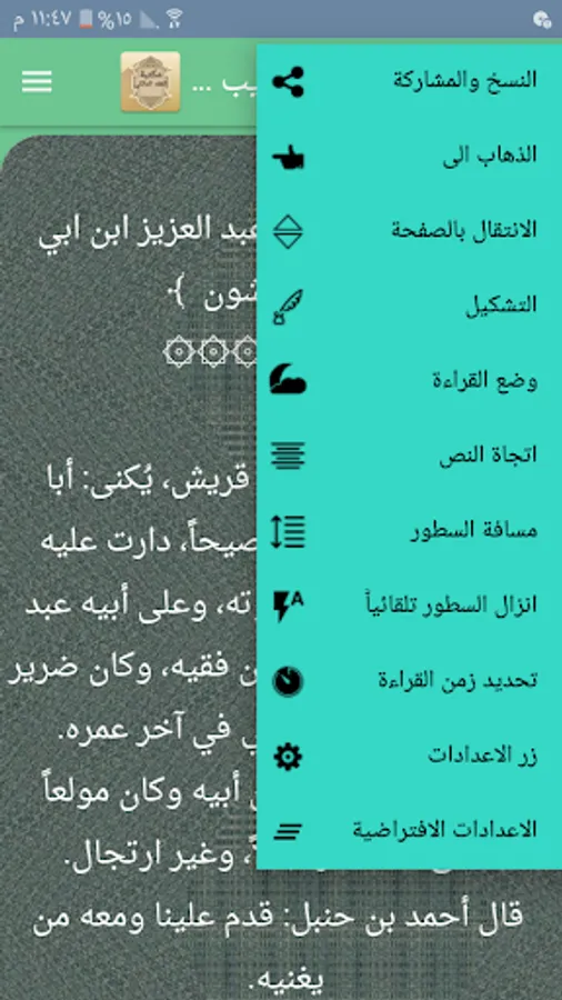 ◉ The possibility of changing the background color of reading the page to hundreds of colors.