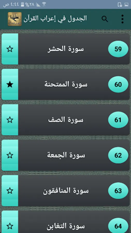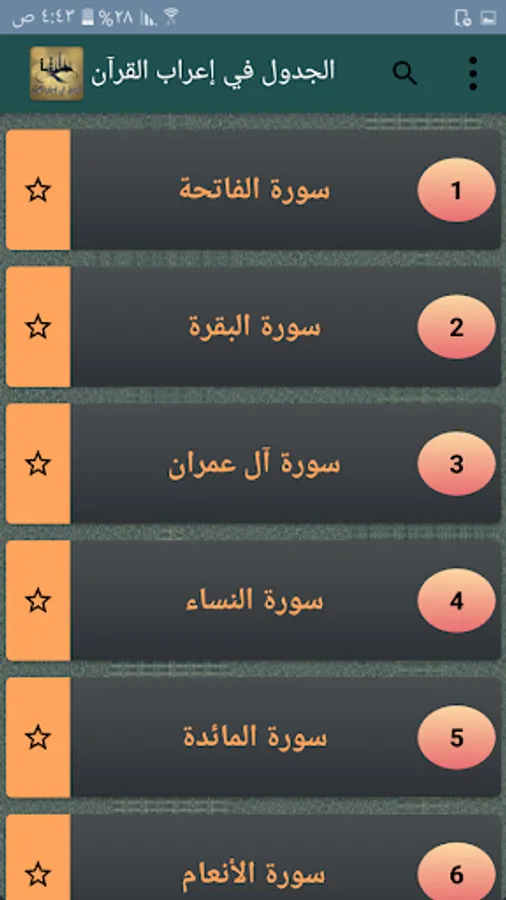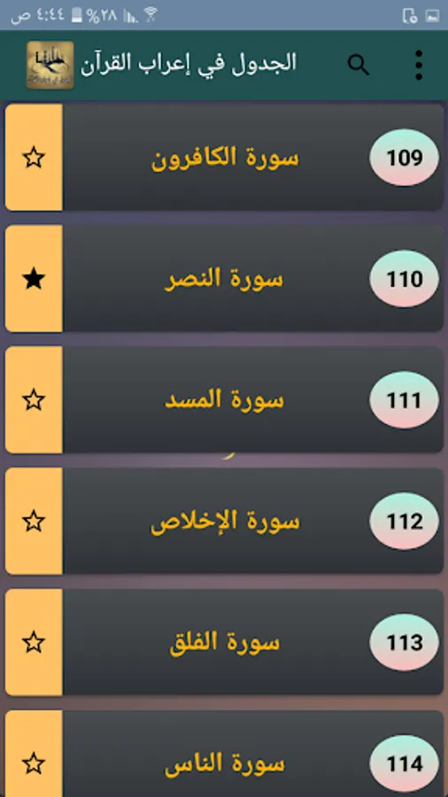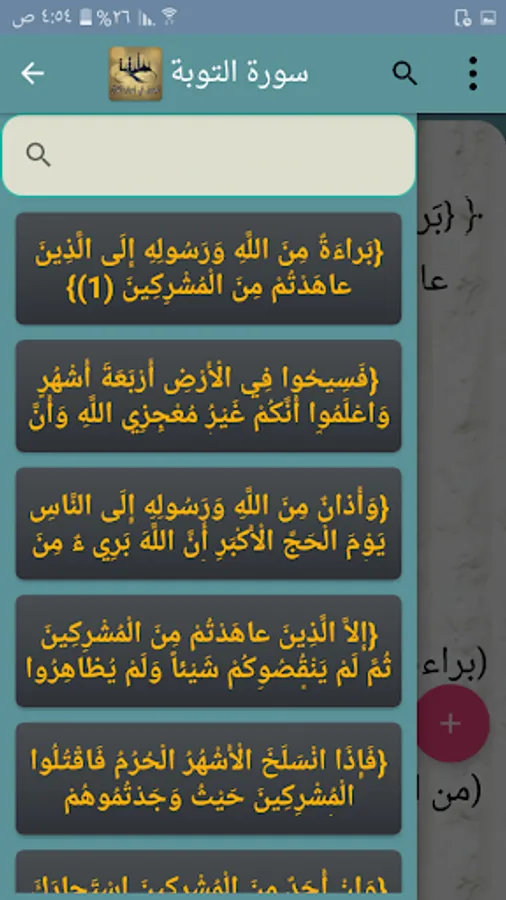 ◉ A side menu containing all the verses of the surah for quick presentation and transition between them.