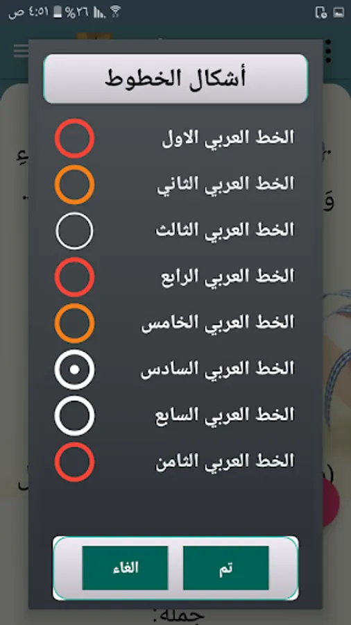 ◉ The ability to change the font shape within 8 Arabic fonts.
