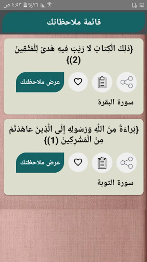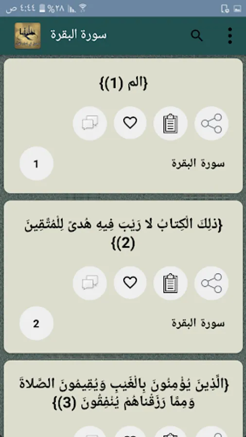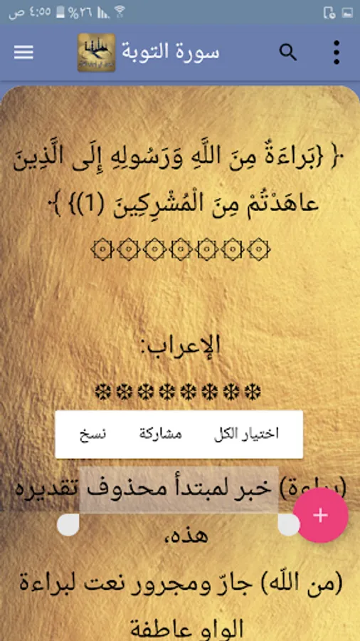 ◉ The possibility of copying and sharing any specific part of the verse and interpretation through prolonged pressure.